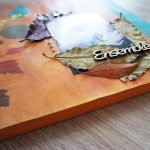Commencez par découper votre feuille de papier scrapbooking avec votre massicot. Elles seront utilisées comme fond donc pensez bien à choisir avec le jeu de couleur de votre photo (format : 15x20cm). Ensuite coller votre photo avec de la colle et du masking tape dans les coins. Ecrivez la date du voyage en bas de voter feuille avec les tampons alphabet, votre encreur et le bloc acrylique. Et enfin, personnaliser votre page en ajoutant des tampons Voyages, Sport et autres stickers d’embellissements.