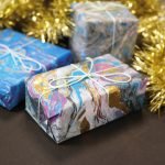 Découpez dans vos papiers imprimés des formes géométriques : rond, triangle… de différentes tailles en variant les papiers et motifs.